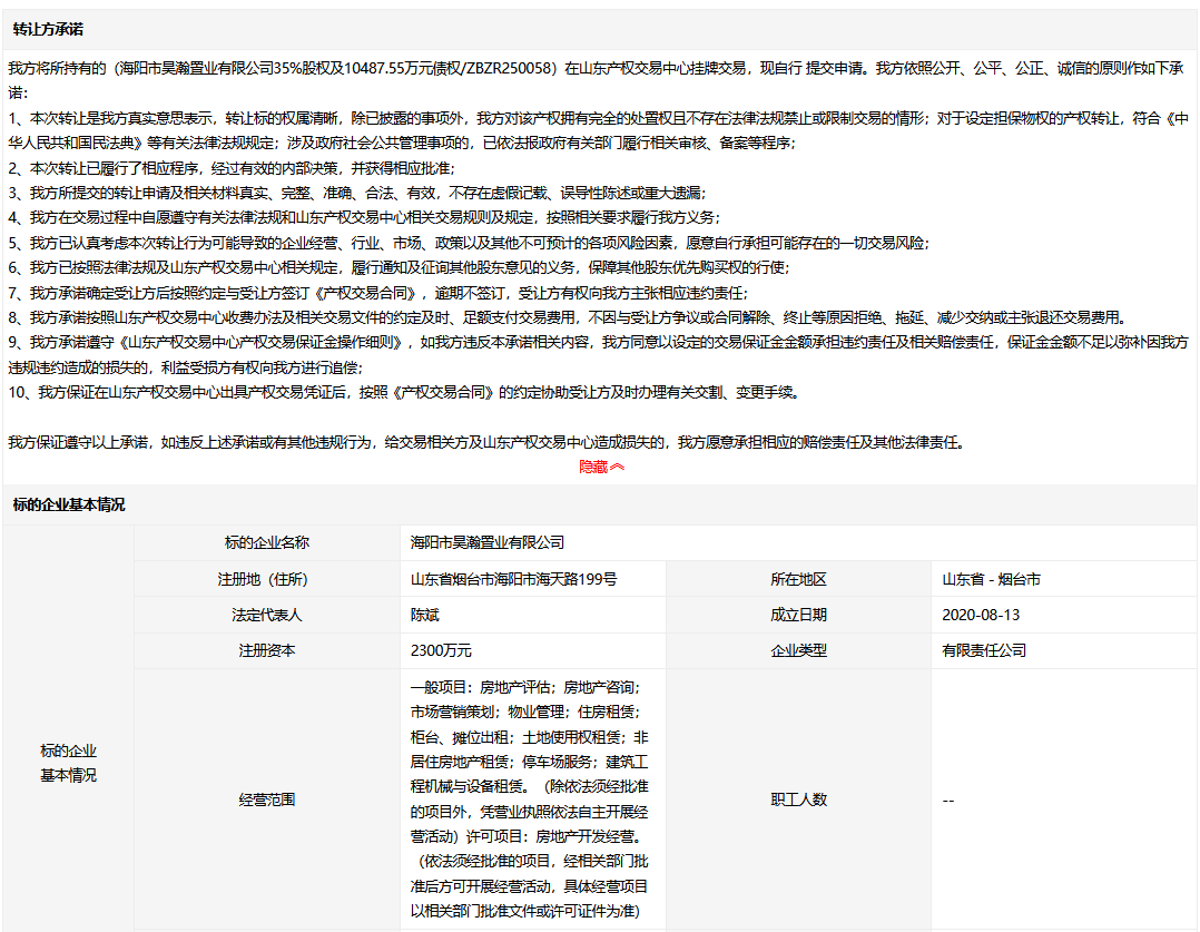 轉(zhuǎn)讓方:海陽市昊海置業(yè)有限公司