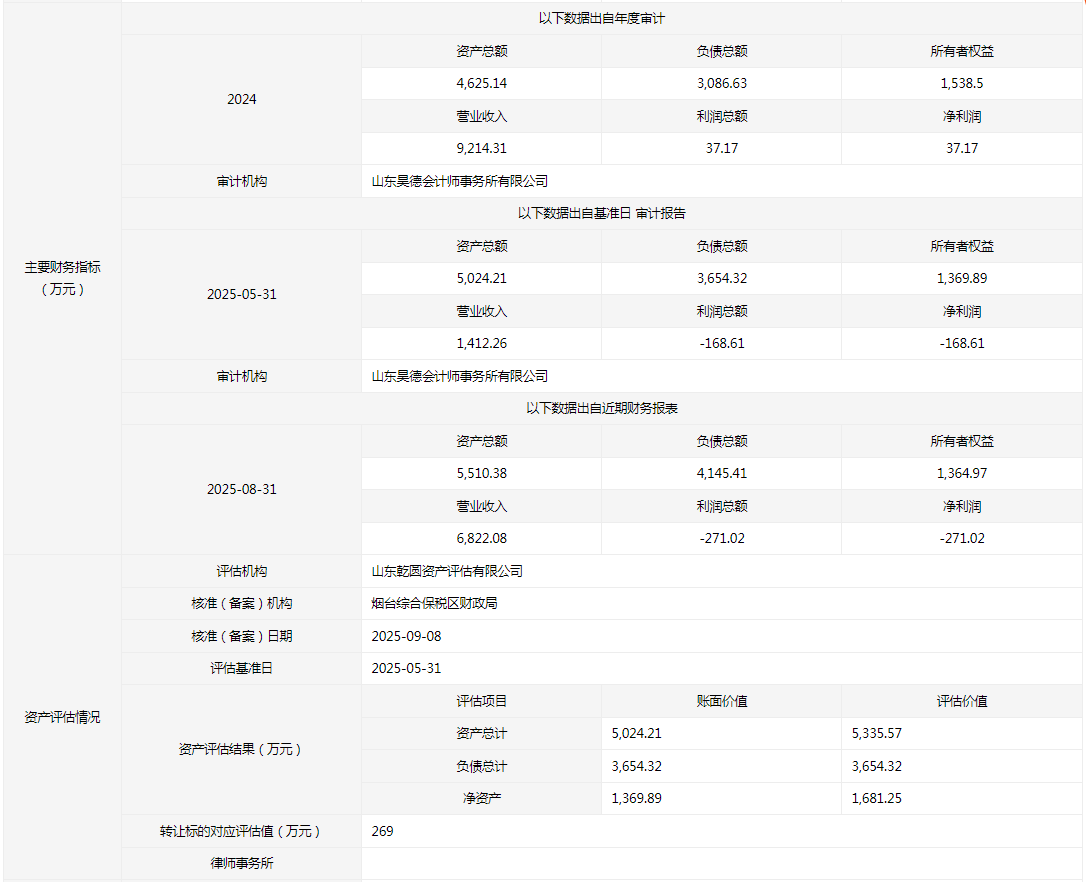煙臺亞中海產(chǎn)品有限公司60%國有股權(quán)