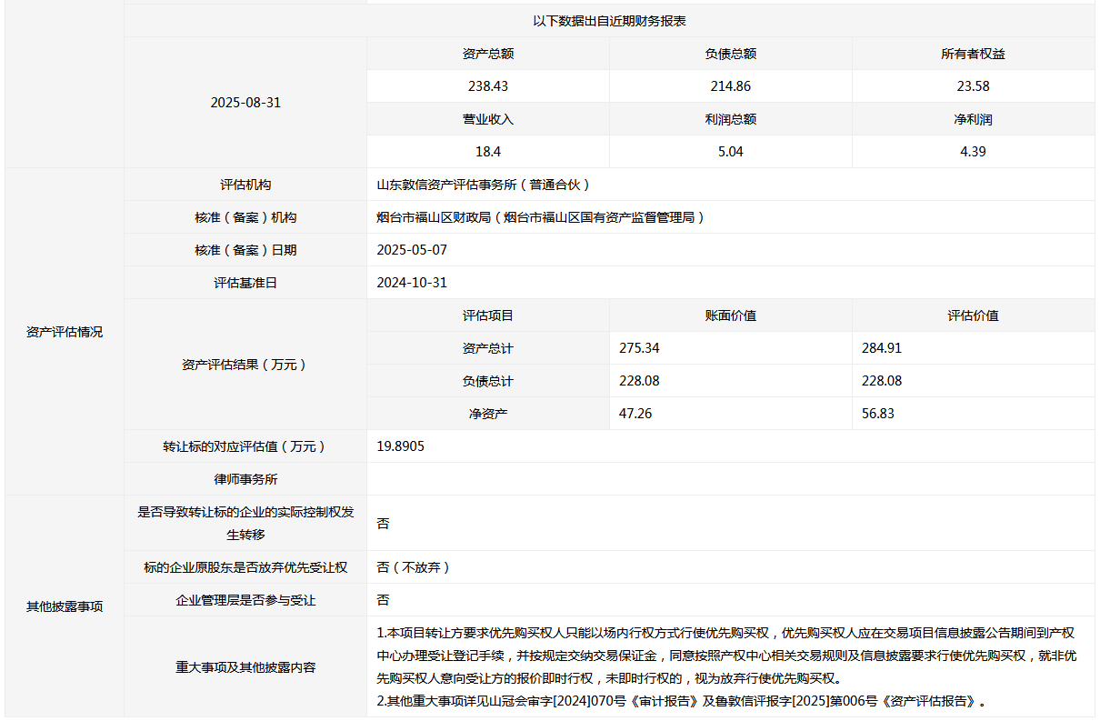 轉(zhuǎn)讓方: 煙臺市福山區(qū)財(cái)政局(煙臺市福山區(qū)國有資產(chǎn)監(jiān)督管理局)