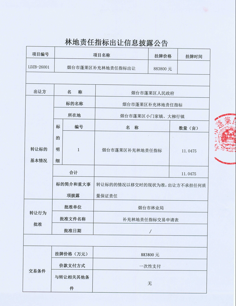 煙臺(tái)市蓬萊區(qū)補(bǔ)充林地責(zé)任指標(biāo)出讓