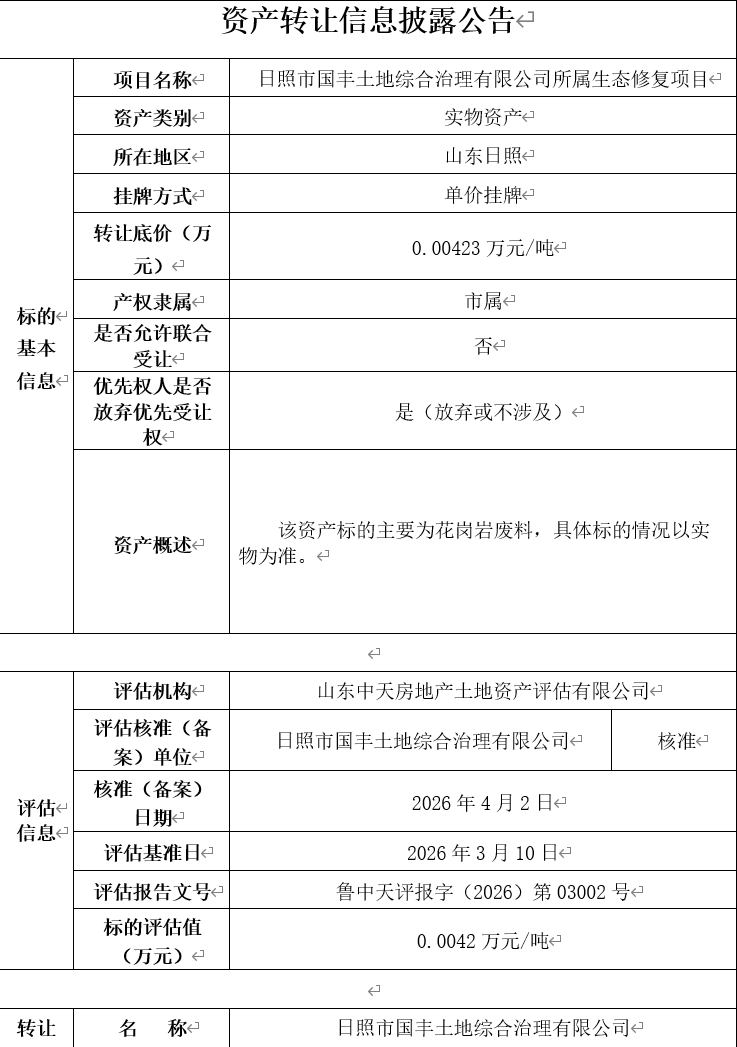 日照市國豐土地綜合治理有限公司所屬生態(tài)修復(fù)項(xiàng)目