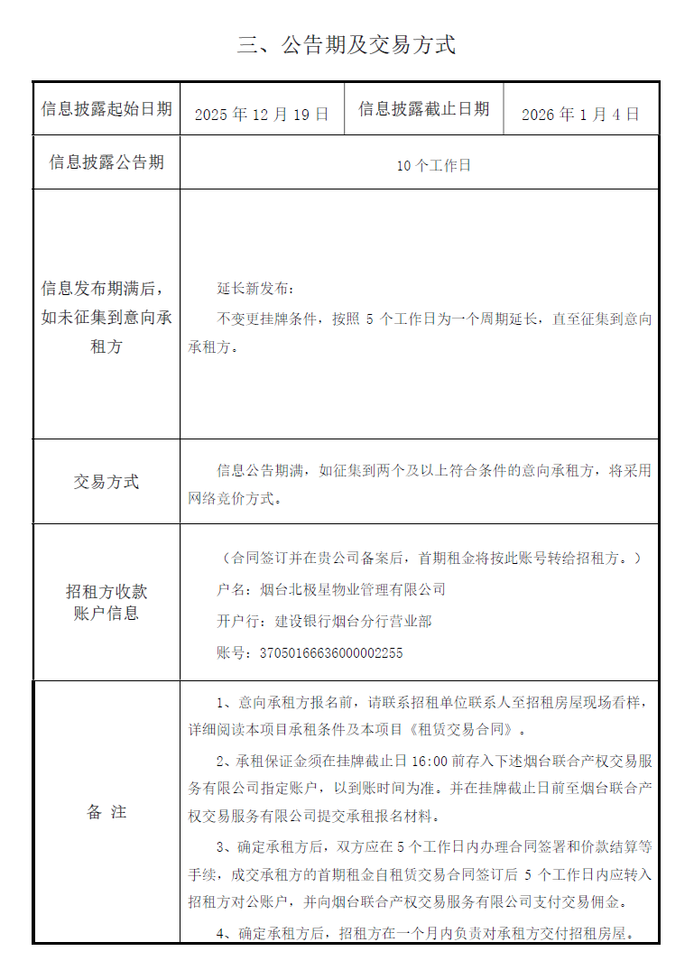 掛牌起止日期:2025年12月19日-2026年1月16日